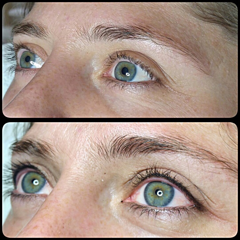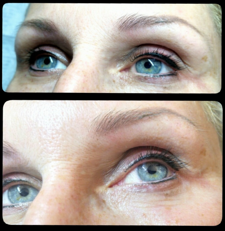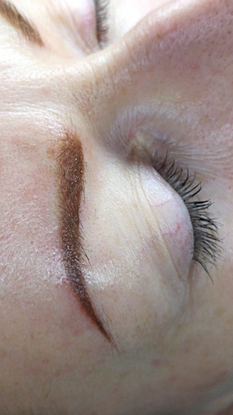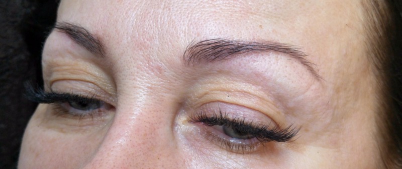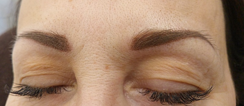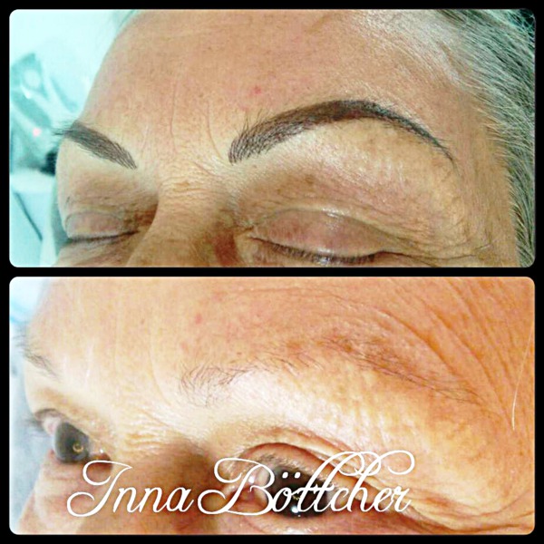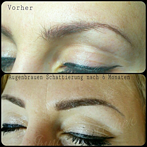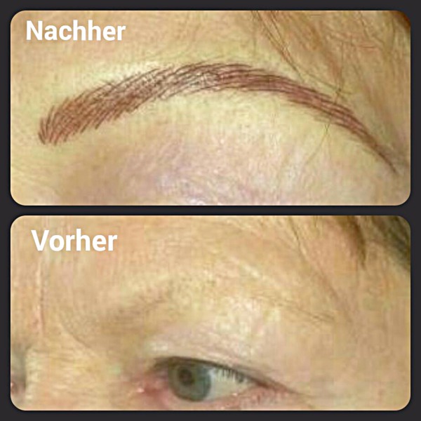 Augenbrauenkorrekturen mit Härchenzeichnung oder Augenbrauenschattierung.